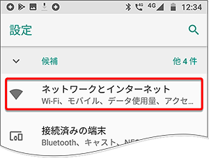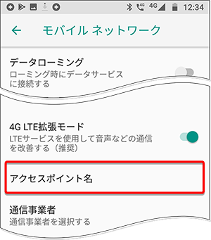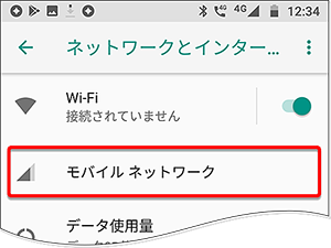 しばらくお待ちいただいても画面右上のモバイルネットワークアイコンが