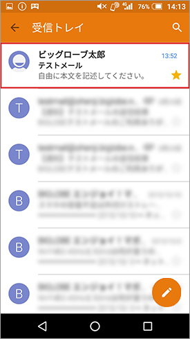 - 送信したメールが正しく受信されていることを確認する。該当メールをタップする。