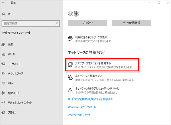 - 「関連設定」欄の[ネットワーク アダプターオプションの詳細]をクリックします。